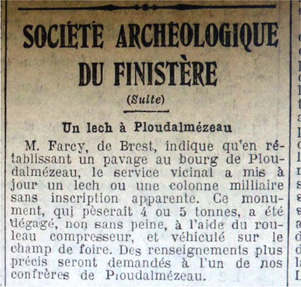 C'est une belle stèle haute de près de 2 m, l'une des plus hautes du Pays d'Iroise. L'un de nos internautes a retrouvé un article datant de 1931 indiquant l'implantation de la stèle à cet emplacement.