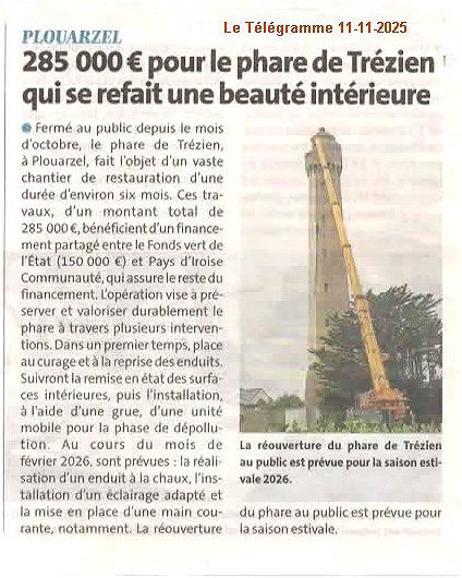 C'est après l'échouage d'un torpilleur de la Marine, que l'Etat décida de faire édifier un phare à cet emplacement. Le bâtiment fut inauguré en 1894. Avec une hauteur de 37,20 m et une portée de 23 milles ( 40 km ), le phare de Trézien permet aux marins d'effectuer dès la pointe de Pen Hir un alignement avec le phare de Kermorvan afin de suivre avec certitude la première partie de la voie dépourvue d'écueils du chenal du Four. Au large de Trézien, il leur faut changer d'alignement.